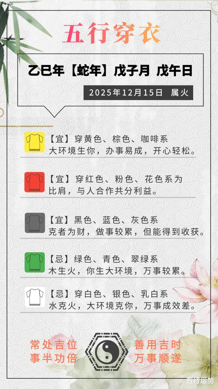 【五行穿衣】2025年12月15日五行旺运穿衣指南丨穿出好运